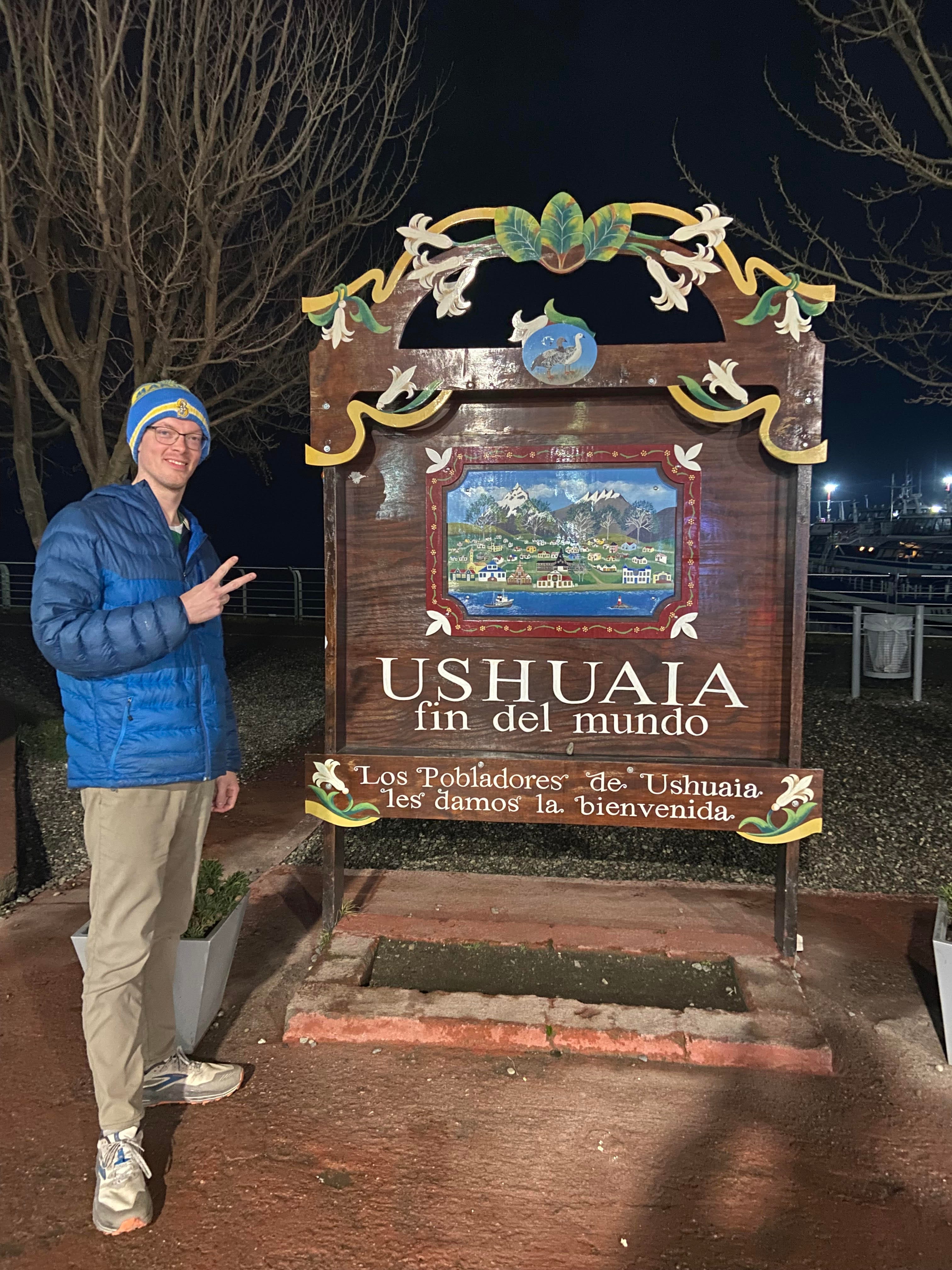 Photo: Me in Ushuaia, June 2023. Photo credit to the Italian, his shadow in the bottom right corner.